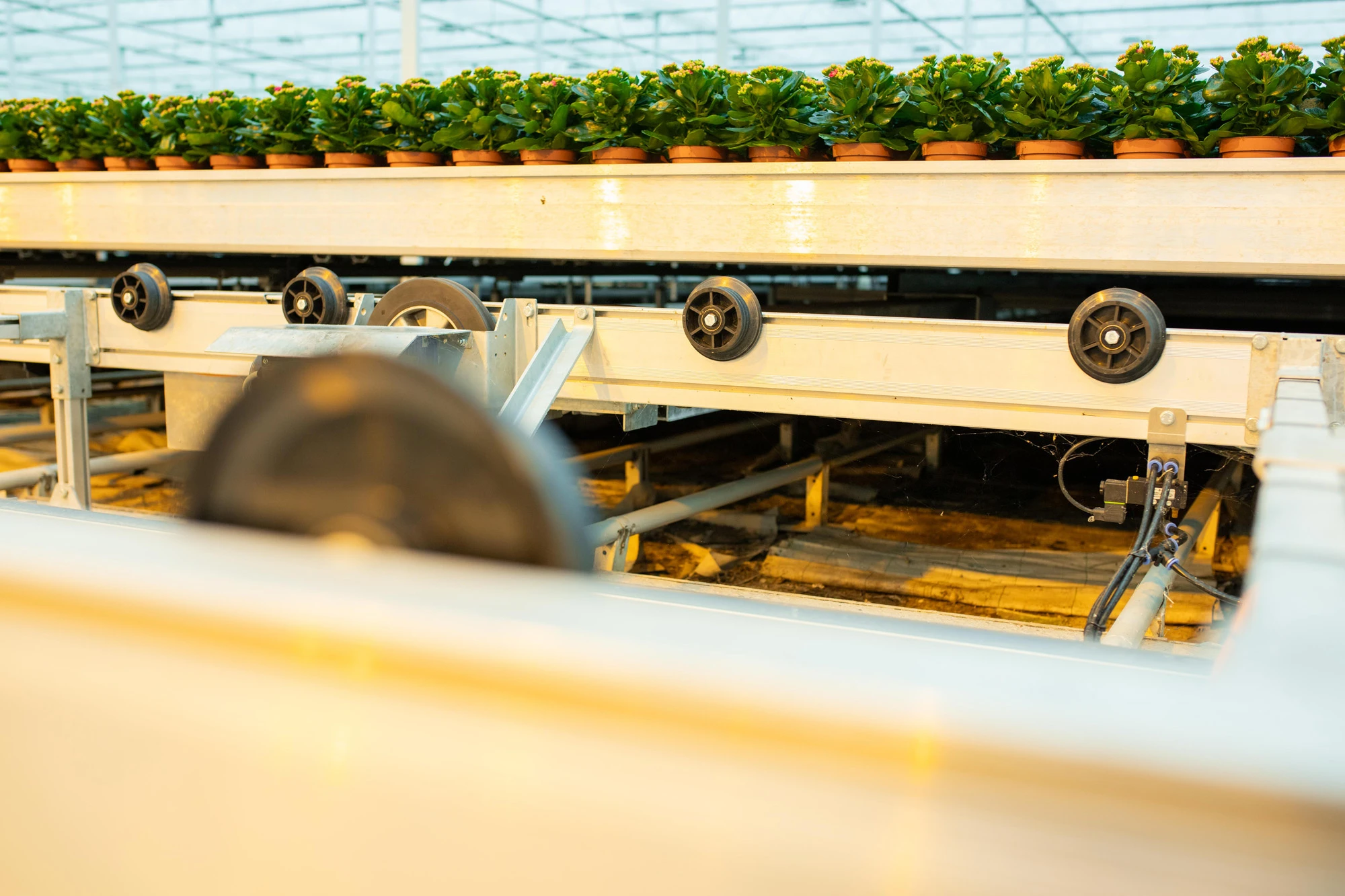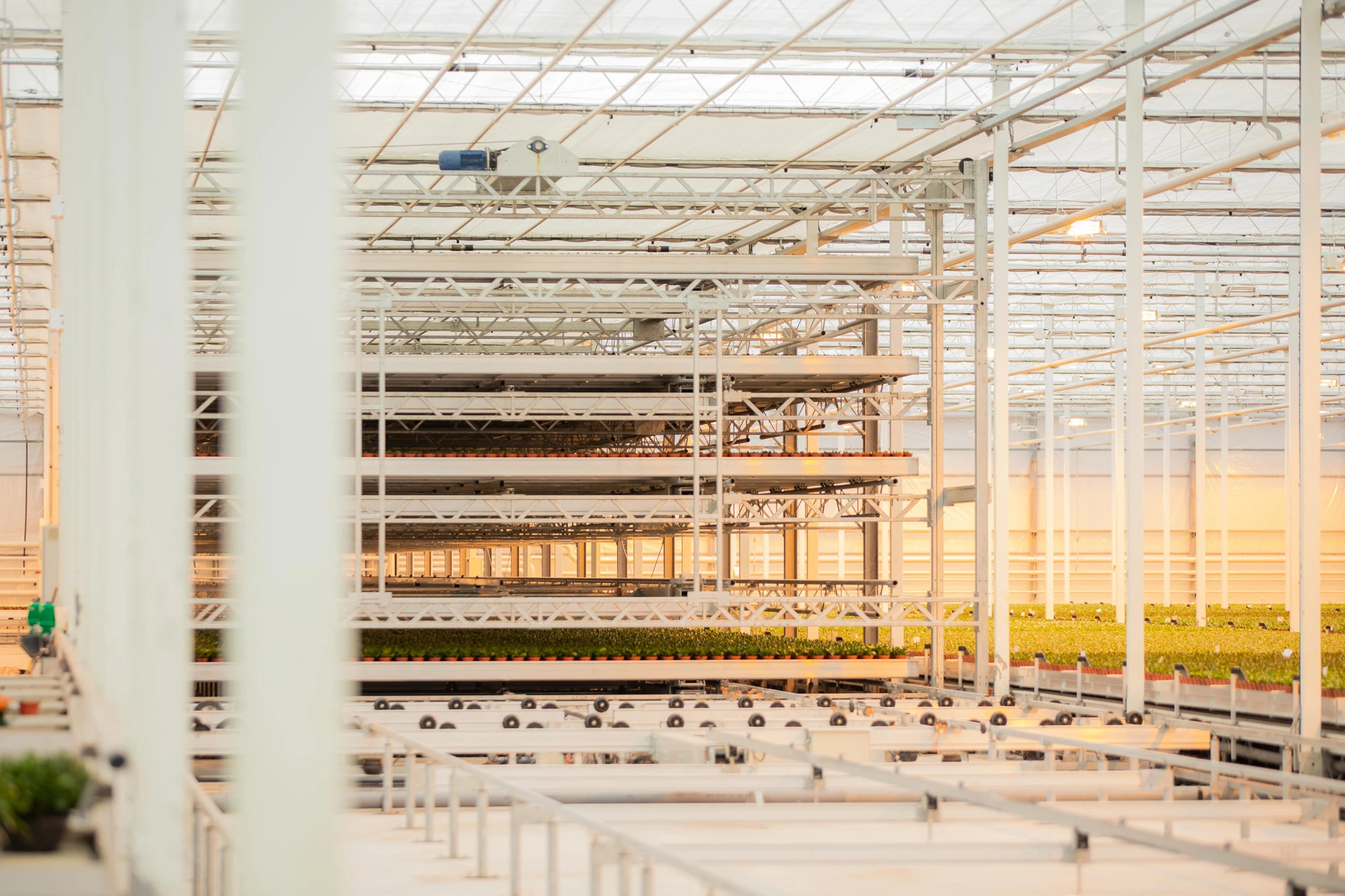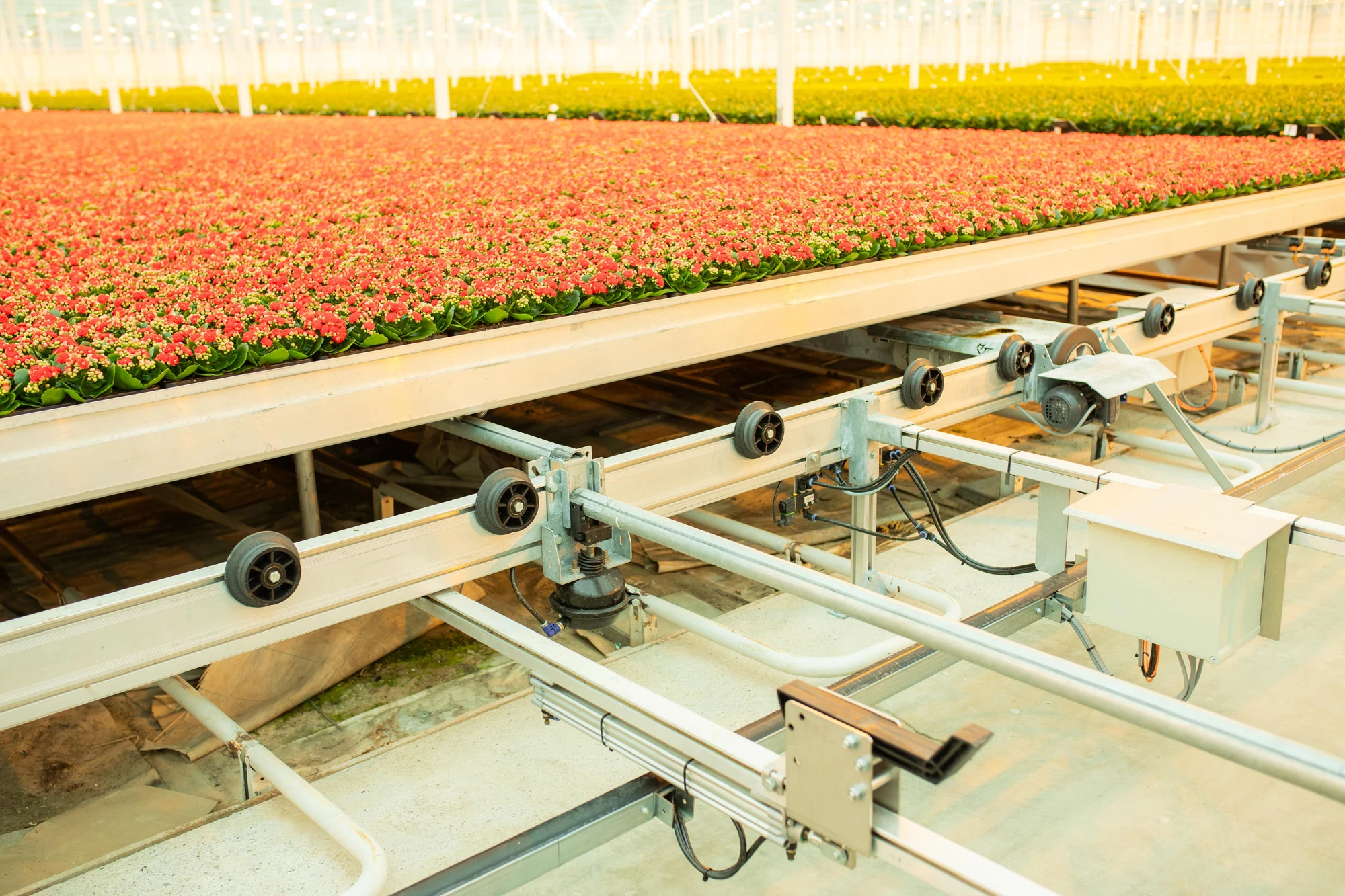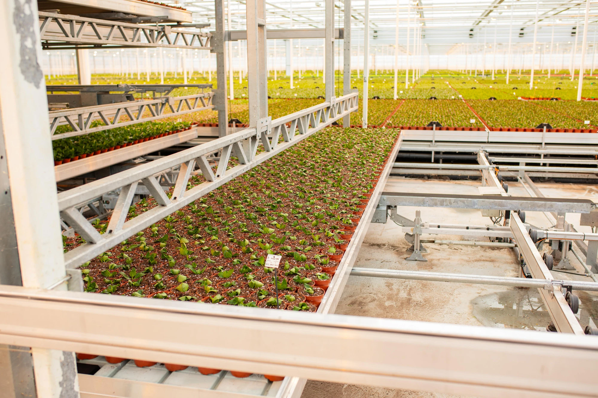 Kwekerij Lankhaar is kweker en veredelaar van Kalanchoë's. Wij realiseerden een compleet teeltsysteem voor hun kwekerij in Bleiswijk. Het teeltsysteem bestaat uit 5 hectare mobiele containersystemen, een meerlaagse opstelling met vijf lagen voor de opkweek van planten, een bovenloopkraan, (ont)stapelaars en een containerwasser. Dit teeltsysteem stelt Kwekerij Lankhaar in staat om hoogwaardige Kalanchoë's te produceren door de beschikbare ruimte te maximaliseren en de productiviteit te verhogen.